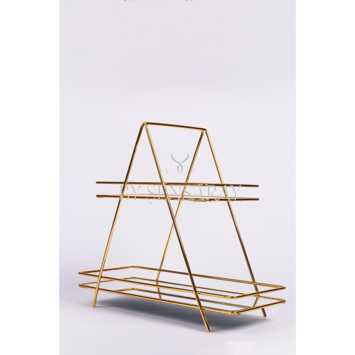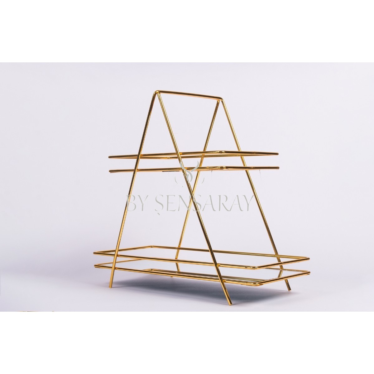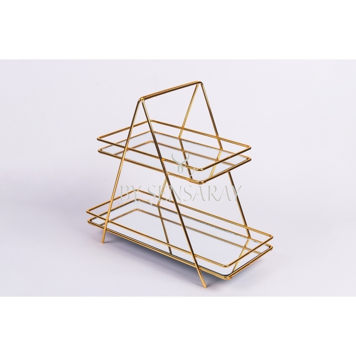2 KATLI AYNALI ÜÇGEN SUNUMLUK GOLD | Aksesuarlar | Tepsi ve Sunum Malzemeleri | BY SENSARAY